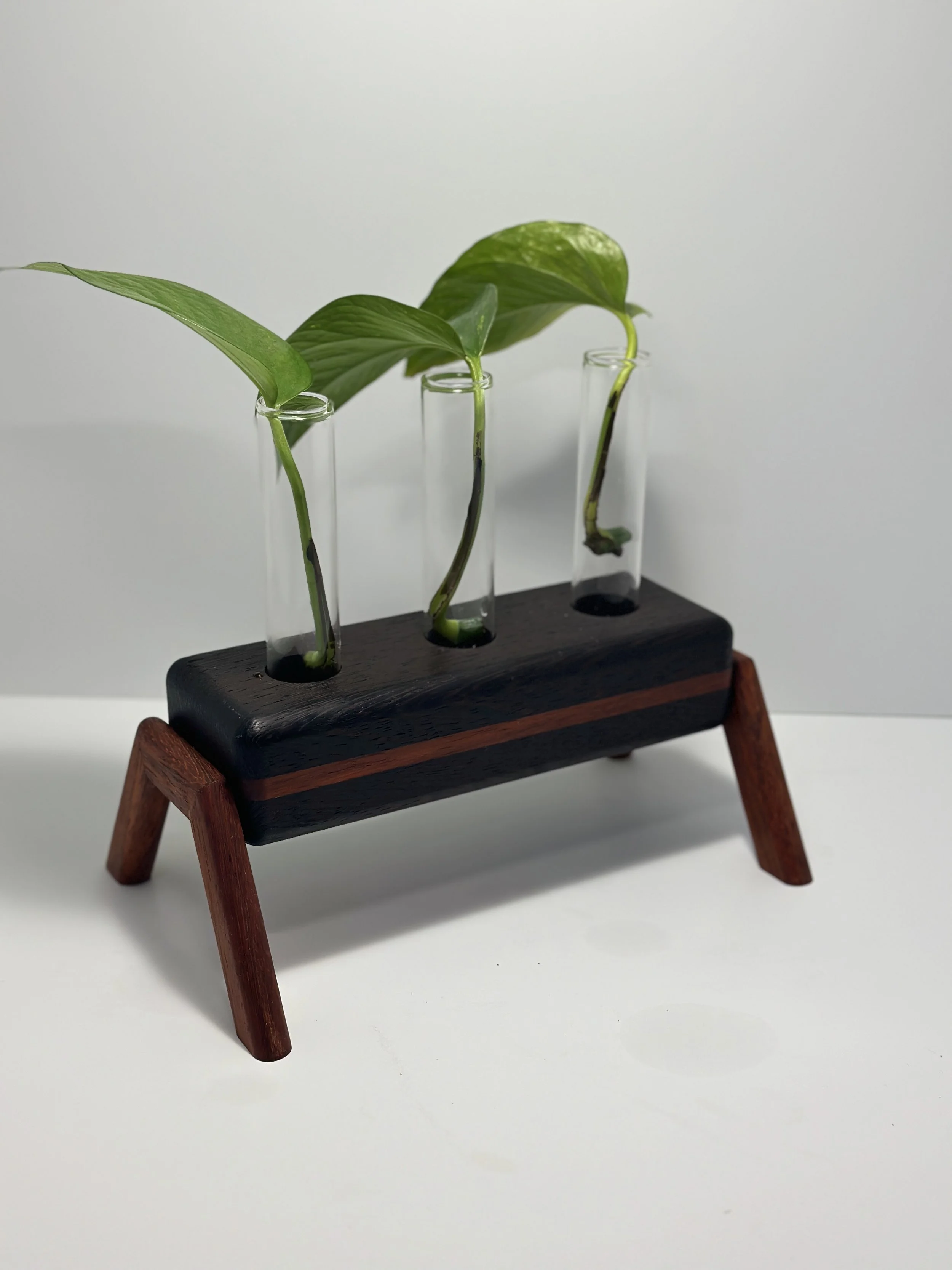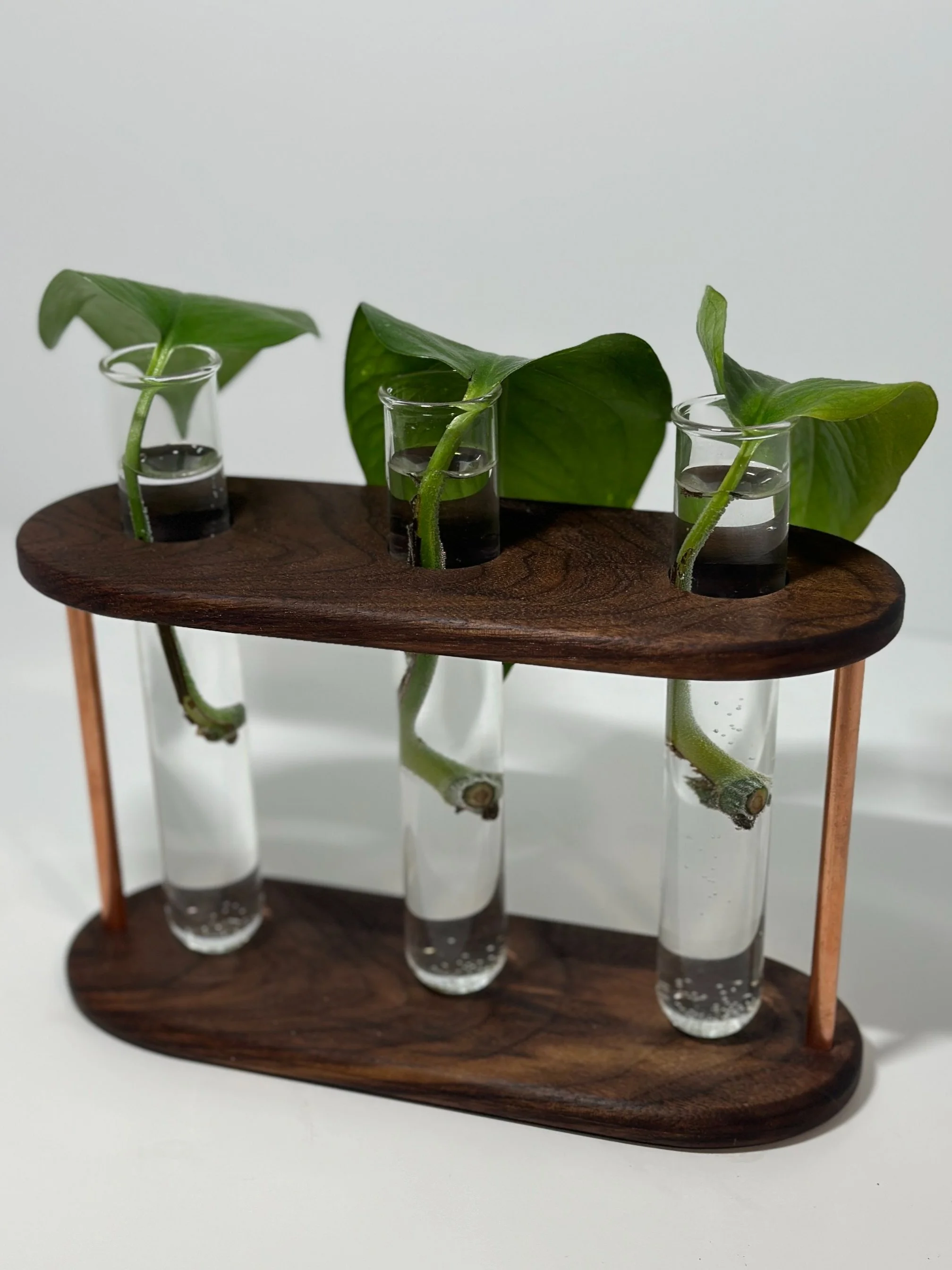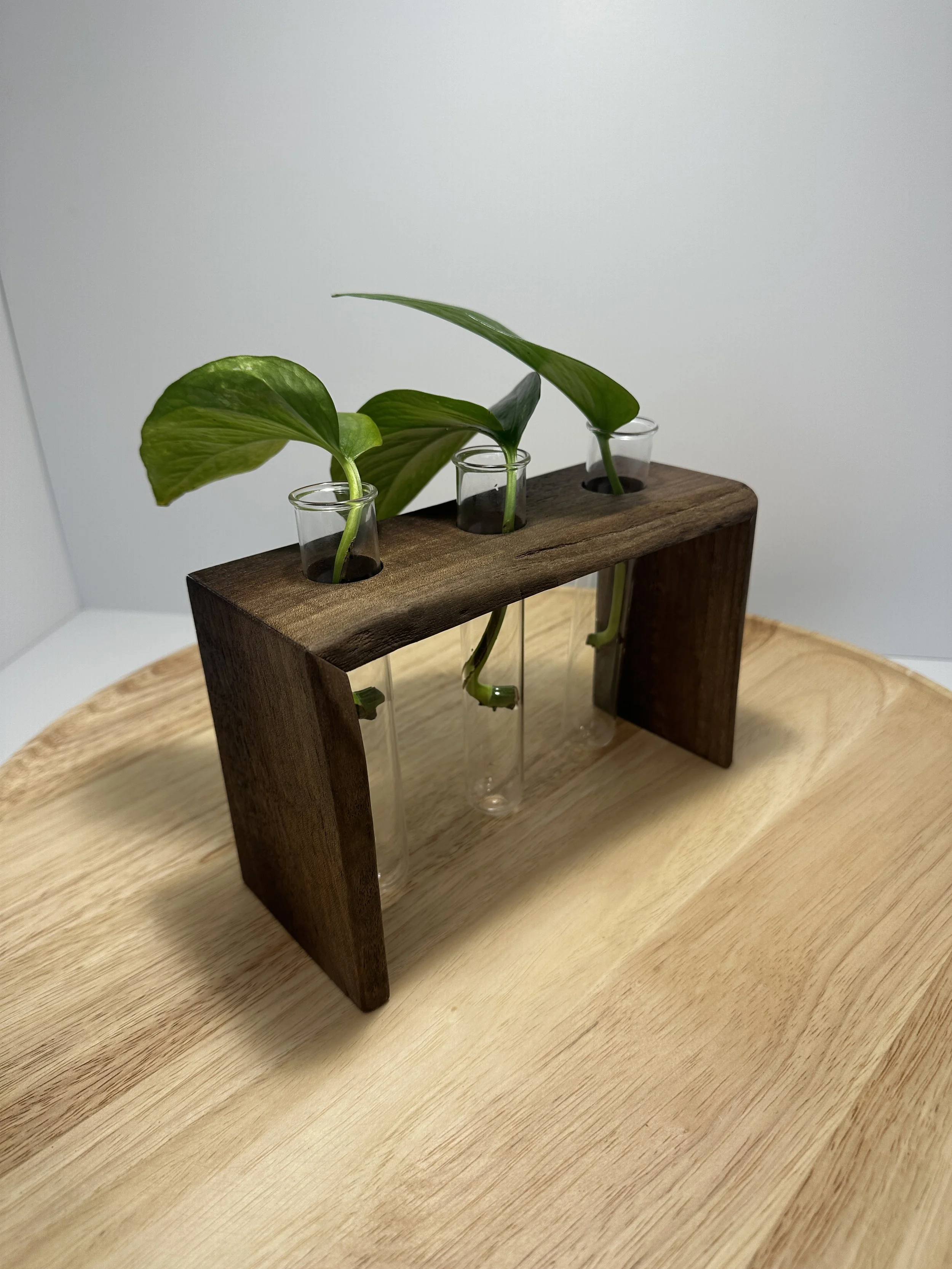 Our Mid-Century Modern three tube Propagation Station is the perfect fusion of style and functionality for plant enthusiasts. Crafted from high-quality wood, this sleek propagation station embodies the timeless elegance of mid-century design while providing a nurturing space for your plant cuttings to thrive. With its minimalist aesthetic and clean lines, it seamlessly complements any modern interior décor. Elevate your plant propagation experience with this stylish accessory that brings a touch of nature indoors.